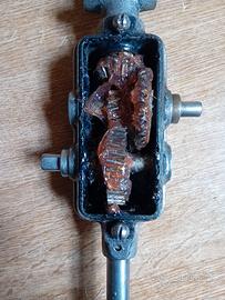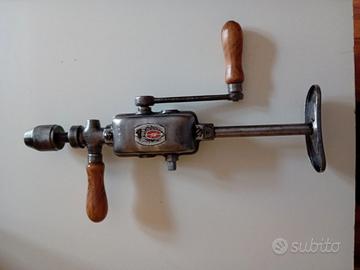 Trapano vintage "GERMAN" con doppio comando per variazione numero di giri e coppia. Meccanismo perfettamente funzionante, rotazione fluida senza inceppi, struttura solida. Trattamento antiruggine e protettivo trasparente . Ingrassaggio meccanismi. Avendo verificato in rete valutazioni differenti, si accettano offerte. Disponibile a ulteriori foto e dettagli.