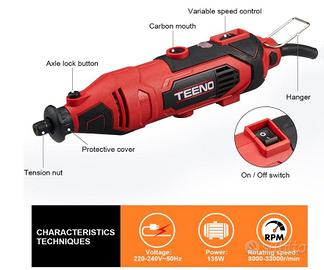 motore ad alta potenza: ottimo sia per lucidare le pietre di una collana fatta a mano, che per incidere uno specchio di vetro o pulire un intarsio di un mobile d'epoca, il potente motore ad alte prestazioni consente di completare facilmente tutti i tipi di lavoro