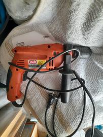 Trapano T500 Valex . Potenza 500 W, da 0 a 2800 giri al minuto, portata mandrino 2-13mm autoserrante reversibile, impugnatura anteriore regolabile con asta fine corsa. Interruttore elettronico per dosare e