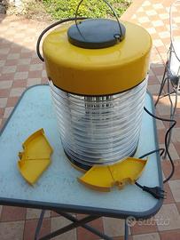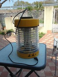 Trappola ad ultravioletti per l'eliminazione di insetti notturni volanti. Completamente in plastica per la resistenza alle intemperie. In tre cassetti sul fondo si raccolgono gli insetti morti.