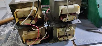 trasformatori mot provenienti da forni microonde rottamati sono ottimi per realizzare puntatrici saldatrici caricabatterie pirografi ecc.. ecc. posso fornire il prodotto integro o con il secondario smontato già pronto per realizzare una puntatrice spese di spedizione escluse pagamento TRAMITE SUBITO spedizione tramite subito.2 pezzi 25€