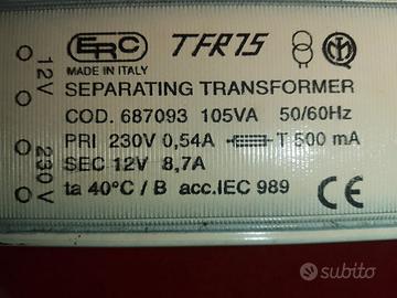 Trasformatore da 230 a 12 Volt 6,7 A come da dati di targa