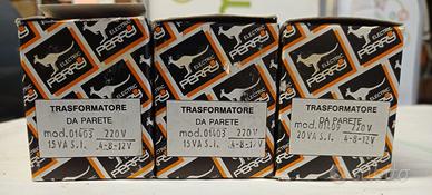 Vendo 2 trasformatori da parete nuovi originali Perry mod. 01403 220 Volt, 15VA S.I. 4-8-12V; 1 mod. 01409 220V. 20VA S.I. 4-8-12V Euro 7,00 all'uno