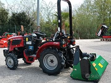 Il Dunsch AgriTrac 254 è un trattore compatto 4x4 progettato per offrire massima versatilità, affidabilità e facilità d’uso in ambito agricolo, hobbistico e professionale. Grazie alla trazione integrale e alla struttura compatta, garantisce manovrabilità eccellente anche in spazi ristretti e su terreni impegnativi. ⚙️ Motore e Prestazioni •Motore diesel 4 tempi, 4 cilindri •Raffreddamento ad acqua – 1.508 cc •Potenza massima: 18,5 kW (25 HP) a 3.600 giri/min •Serbatoio carburante: 13,5 litri •Avviamento elettrico •Servosterzo ⸻ 🔄 Trasmissione •Cambio: 9 marce avanti + 3 retromarce •Velocità massima avanti: 15,3 km/h •Velocità massima retro: 8,49 km/h •Frizione meccanica •Leve cambio ergonomiche ⸻ 🛠️ Dotazioni e Funzionalità •Trazione integrale inseribile •Blocco differenziale •Presa di forza posteriore a 2 velocità (550 / 967 giri/min) •Attacco a 3 punti categoria 1N •Freni indipendenti (anche separati per uso in campo) •Freno di stazionamento •Rollbar di protezione pieghevole •Cruscotto strumenti completo •Sedile confortevole con cintura di sicurezza •Segnalatori acustici e luminosi •Cofano motore in metallo •Doppio retrovisore ⸻ 📏 Dimensioni e Assetto •Raggio di sterzo: 2.300 mm •Altezza da terra: 285 mm •Pneumatici agricoli tubeless •Anteriori: 5-12 •Posteriori: 8-16 •Carreggiata anteriore regolabile: 750–960 mm •Carreggiata posteriore regolabile: 760–960 mm A richiesta trinciatutto e fresatrice disponibili.
