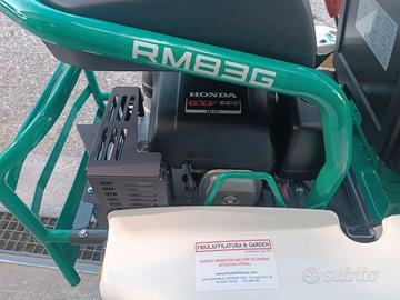 Macchina nuova dimostrativa con garanzia. IN OFFERTA Trattorino tagliaerba falciatutto Modello RM83GMotoreHonda GXV 390 OHVCilindrata [cc]389 Emissioni CO2 Avviamentoelettrico Capacità serbatoio11 l TrasmissioneMeccanica, progettata e realizzata da Orec Cambio4 marce avanti + 1 retro Velocità km/h1 – 1,9 / 2 – 3,1 / 3 – 5,1 / 4 – 7,7 / 1R – 2,2 Bloccaggio differenzialedi serie Freno di servizio e di stazionamento Posteriore a ceppi esterno alla trasmissione e anteriore a ceppi su ruote INFO 0432756320 Siamo centro assistenza OREC MADE IN JAPAP