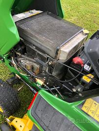 Trattorino john deere diesel motore bicilundrico yanmar con idroguida e sollevamento piatto idraulico taglio 125cm con lame e cuscinetti nuovi,batteria nuova, scarico laterale.