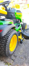 Trattorino John Deere bicilindrico X165 Motore 22 CV bicilindrico Piatto da 122cm 3 LAME idrostatico gomme maggiorate alta velocita sedile confort regolabile Macchina adatta per superfici molto grandi, dotata sia di tappo che di deflettore scarico laterale