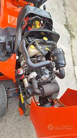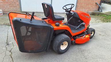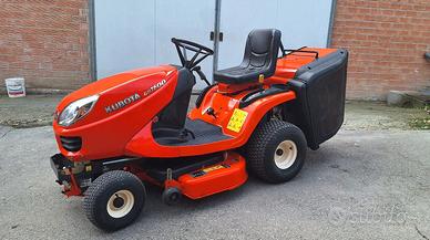 Trattorino rasaerba Kubota gr 1600, motore bicilindrico DIESEL raffreddato a liquido, trasmissione idrostatica, piatto di taglio bilama larghezza 107 cm con scarico erba posteriore e cesto di raccolta rigido molto capiente.