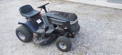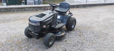 Trattorino tagliaerba dal peso di circa 180 kg., con scarico laterale e piatto da 40 pollici (larghezza di taglio circa 102 cm), progettato per il taglio di grandi superfici erbose, inoltre è equipaggiato con un motore a 4 tempi Briggs & Stratton con potenza di 13,5 HP, trasmissione idrostatica, quindi cambio “a pedale” senza scalare marce, con velocità avanti/retro variabili, dotato di una regolazione dell’ altezza del taglio a 7 posizioni (da 2 a 10 cm circa). In particolare questo trattorino è sempre stato usato per tagliare erba in modalità mulching cioè che taglia l'erba finemente senza raccoglierla, tanto che lo scarico laterale è nuovo mai usato. La cinghia piatto lame è stata sostituita nuova il mese di settembre (usata 5 ore) e le lame sono state affilate nei giorni scorsi.
