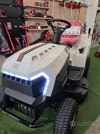 due lame sicnronizzate, taglio cm. 98, mozzi lama in alluminio, scarico posteriore con raccolta o mulching,