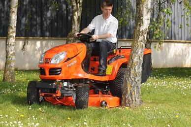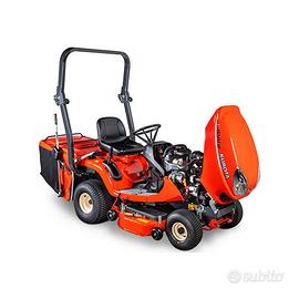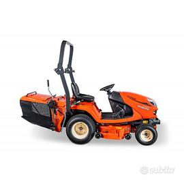 Motore diesel di 21 cv, trazione integrale, motore a 3 cilindri di 778cc, potenza massima 15.6kw/21hp, capacità del serbatoio 18 lt, trasmissione idrostatica, sistema trasmissione ad alberi cardanici, frizione TPO meccanica a dischi in bagno di olio, sterzo ad idroguida con Glide Steer, trasmissione al piatto ad albero cardanico, sedile regolabile scorrevole, freno lama nella frizione PTO, sicurezze fermo macchina, con sistema di allarme in retromarcia Kubota (KRA), capacità cesto 450 lt, arco di sicurezza abbattibile, piatto a 3 lame per una larghezza taglio cm 121.9, altezza taglio in mm 25-102, sistema di montaggio del piatto con attacco rapido, regolazione dell'altezza di taglio mediante manopola centralizzata.