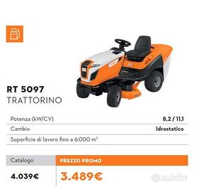 In vendita trattorino STIHL RT 5097, ideale per la cura di giardini e aree verdi di medie e grandi dimensioni.