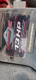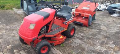 Trattorino tagliaerba 13cv ben funzionante con sistema di raccolta sganciabile- si può usare anche solo con spazzola per per pulire giardini da fogliame e altro. Batteria da sostituire.