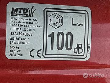 Vendo per inutilizzo trattorino MTD Optima LG 200 H, acquistato nel 2020, usato poco e sempre tenuto con cura. ✔ Perfettamente funzionante ✔Tempo totale di utilizzo stimato 90-120h ✔ Tagliando e cambio batteria effettuato a Luglio '24 ✔ Motore potente e affidabile, 22Hp ✔ Cambio idrostatico Ideale per giardini medio-grandi. Disponibile per visione in zona Mestre, prezzo trattabile no perditempo. ____________________ Motore MTD V-Twin Potenza 13,1 kW@2800 min-1 Cilindrata 679 cc Batteria 12V Lubrificazione motore a olio Volume serbatoio carburante 3,8 lt Trasmissione idrostatica Piatto di taglio Larghezza di taglio 107 cm Tipo di taglio scarico laterale e mulching - raccolta optionale Altezze di taglio 5 (30-95 mm) Regolazione altezza di taglio manuale Innesto lama manuale Lame 2 Struttura Dimensione ruote anteriore 15" x 6" Dimensione ruote posteriori 20" x 8" Peso netto 175,00 kg Dimensioni 170 x 115 x 100 h mm TipologiaTrattorini-rasaerba MaterialeAcciaio Tipo motoreScoppio 4 T AlimentazioneBenzina Voltaggio12V Potenza13100 W Cilindrata679cc Potenza (Hp)22 Hp Marca motoreMTD AvviamentoAutomatico Capacità serbatoio3,8 lt Larghezza taglio107 cm Superficie consigliatapiù di 4001 mq TrasmissioneIdrostatica Numero di lame2 Altezza taglio max95 mm Altezza taglio min30 mm Posizioni di taglio5 Scarico lateraleSi Scarico posterioreNo Cesto di raccoltaNo