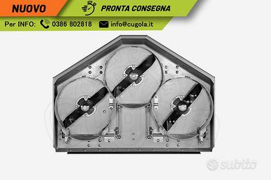 -Piatto di taglio rotativo a tre lame. Doppia funzione taglio mulching o taglio scarico posteriore con leva Quick Shift.