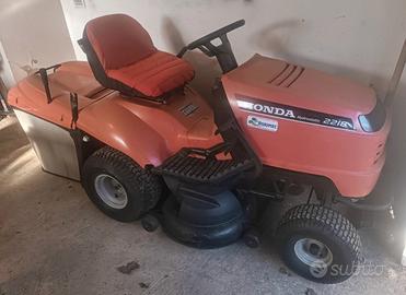 Vendo trattorino tagliaerba Honda hydrostatic 2218 in ottime condizioni appena tagliandato con sostituzione filtri, olio, candele e affilatura lame. Motore bicilindrico Honda 530cc., trasmissione idrostatica, piatto taglio tosaerba 65 cm bilama, con accessorio mulching e cesto di raccolta.