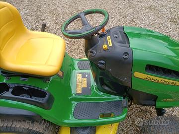 John Deere x140 in eccellenti condizioni,piatto a tre lame,motore bicilindrico 22cv, avanzamento idrostatico con cruise control, azionamento lame tramite pulsante elettrico,ore macchina 480 sempre tagliandato e pronto all' uso.Prezzo della versione attuale di pari livello 6.000€