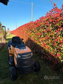 Vendo trattorino tagliaerba STIGA Estate 2084 H , acquistato nel 2017 e utilizzato poco. Macchina affidabile, sempre tenuta con cura e perfettamente funzionante, ideale per giardini medio-grandi. Il trattorino è comodo da usare grazie alla trasmissione idrostatica (senza marce) e garantisce un taglio preciso e uniforme. Batteria in sostituzione (aprile 2026), quindi verrà consegnato pronto all’uso. Caratteristiche principali: •Motore STIGA 452 cc monocilindrico •Potenza: 7,4 kW @ 2400 rpm •Trasmissione idrostatica (guida fluida e semplice) •Larghezza di taglio: 84 cm •Altezza di taglio regolabile (7 posizioni: 25–80 mm) •Sistema di taglio: raccolta, scarico posteriore, mulching •Capacità sacco raccolta: 240 L •Innesto lama elettromagnetico •Serbatoio carburante: 6 L •Incluso kit mulching Condizioni: Usato poco, in ottimo stato generale. Sempre rimessato al coperto. Disponibile per visione e prova. Contattami per info o altre foto.