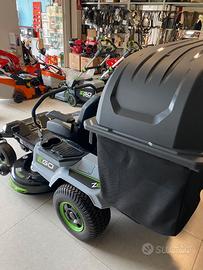 Trattorino tosaerba Ego Z6 raggio zero completo di raccolta , mulching e scarico laterale ,2 lame cm107 ,carica batterie rapido automobilistico 1800w , possibilità di batterie da 10 ah a 400€ cadauna , trasporto gratuito in provincia di Alessandria.