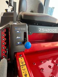 AFFARE DI FINE STAGIONE, ULTIMO PEZZO !! Se cerchi qualità costruttiva, grandi prestazioni di taglio ad un prezzo accessibile, TORO ZS 4200T sta aspettando proprio te !! - Piatto di taglio bilama da 107cm di tipo stampato a scarico laterale; - Kit Recycler di serie; - Potente motore bicilindrico a benzina 4 tempi Briggs & Stratton da 725cc, 24cv; - Trasmissioni idrostatiche indipendenti Hydro Gear ZT-2100; - Freno di stazionamento automatico all'apertura delle leve; - Sistema di controllo della velocità massima Smart Speed Control; - Fuselli ruote anteriori pivottanti, sostituibili. Macchina NUOVA di fabbrica, con 3 anni di garanzia. Possibilità di spedizione