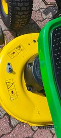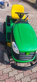 Trattorino tagliaerba rasaerba John Deere modello X125 con poche ore, pari al nuovo usato da privato e tenuto sempre al coperto, perfettamente funzionante, ideale per superfici medie grandi Caratteristiche: idrostatico scarico laterale o mulching motore brigg stratton 18.5 CV Piatto 2 lame larghezza 107 cm Paraurti frontale completo di manuale e tagliando