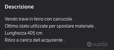 Trave in ferro 405 cm con carrucola. Ritiro a carico acquirente