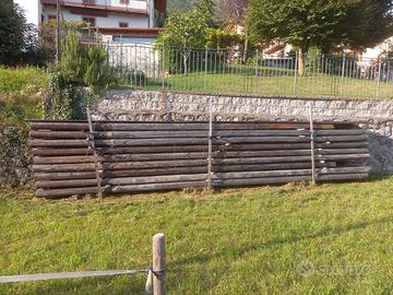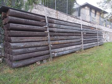 Cedo canteri di abete uso Trieste della lunghezza di ml. 7,30 (n. 30 pezzi) e ml. 6.50 (n.15 pezzi), la sezione è di cm.13*13, con teste rese tonde e mordenzate per circa ml.1.50. Cedibili su richiesta anche con lunghezze inferiori.