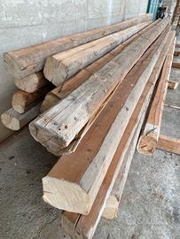 Travi di lunghezza 7m, diametro max 20cm, diam min. 16 cm.; trattati con antitarme. Niente curve o marciume. Sempre asciutti. Rimossi per cambio di destinazione d’uso tettoia. Possibilità di trasporto.