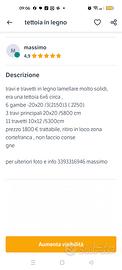 Vendo per cambio progetto travi ,travetti e pilastri tutto in legno di qualità per tettoia ricovero auto o pergolato, misure in foto