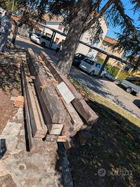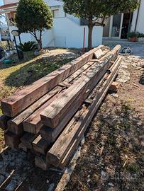 Vendo lotto di travi in legno di abete massello (non lamellare) verniciato. Rimaste all'esterno per qualche tempo, sono ancora in buono stato e pienamente utilizzabili. Presentano alcuni fori per il passaggio di tubi flessibili, facilmente ripristinabili con tasselli e stucco. Incluse nel prezzo le relative piastre di fissaggio a muro in ferro, prodotte artigianalmente su misura. Misure disponibili: 3 travi da 3970 x 140 x 140 mm 13 travi da 3750 x 140 x 140 mm Prezzo: 250 euro per il lotto completo, piastre incluse. Non si vende separatamente. Non spedisco a meno che tu non stia vicino a Osimo Stazione