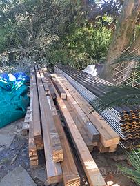 Vendo travi in legno lamellare di una tettoia nuova che abbiamo dovuto smontare. Ne ho di 3 dimensioni: N° 3 travi 8 cm x 12 cm x 6m , N1° trave 8 cm x 12cm x 3m, N° 7 travi 12cm x 10 cm x 3m. Le vendo intere o a sezioni a 7 euro al metro.