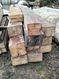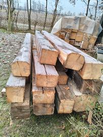 Travi in legno di abete, abete rosso/larice recuperati da demolizione di un stabile centenario. Non sono perfetti e di diverse sezioni e lunghezze, ma ottimi per ripristino sul rustico, lavori del fai da te, come una tettoia per l'auto, set tavolo e panca da giardino, ecc.