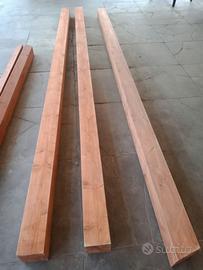 bellissime e robustissime n°3 travi di legno lamellare nuove già trattate, possibilità di comprarne anche solo singolarmente, misure 1 di lunghezza mt 4,50 spessore cm 16 x cm 16. Altre 2 travi lunghezza mt 3 h cm 10, base inferiore cm 15, base superiore cm 13, altra trave di 3 mt già tagliata in 3 parti