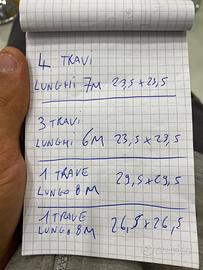 Vendo travi massiccio, 300 € 8 metri, 150 € 7 metri, 120 € 6 metri e altri pezzi piccoli 60 €.