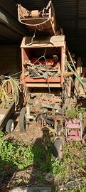 Trebbiatrice antica con imballatrice a mano, per amanti delle antiche attrezzature contadine per esposizione davanti al casale antico.