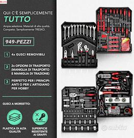 TRESKO® Valigia degli attrezzi composta da 949 pezzi | cassetta degli attrezzi | portaattrezzi | set di arnesi | trolley degli attrezzi | acciaio cromo-vanadio