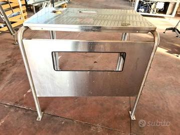 trespolo porta macchina del ghiaccio usato, si tratta di una struttura in acciaio inox adatta per portare i fabbricatori di ghiaccio e tenerle rialzate in modo da poter infilare sotto un carrellino per la raccolta del ghiaccio a scaglie.