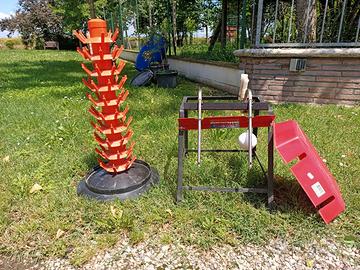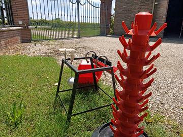 vendo, causa inutilizzo, trespolo portabottiglie lavate, più riempitrice automatica, per imbottigliamento vino. preciso che al trespolo, come si vede da foto mancano 4 piedini, e la riempitrice è priva di bacinella.