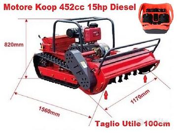 OFFERTA TRINCIA CON MOTORE KOOP 452cc 15hp DIESEL CINGOLATO TELECOMANDATO DI COLORE ROSSO.