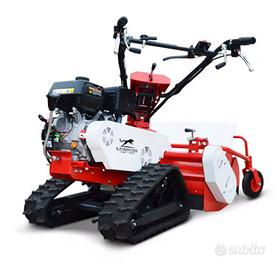 Macchina estremamente potente e stabile grazie ai cingoli in gomma, ideale per terreni difficili, pendenze e zone dove risulta complicato tagliare con un trattore. Manubrio regolabile in altezza e girevole.
