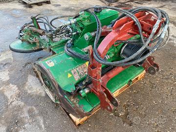Vendo trincia facma larghezza di lavoro cm. 120 con spostamento idraulico laterale e piatto interfila con inclinazione idraulica di diametro cm. 60. Il gruppo del piatto è facilmente e velocemente sganciabile dalla trincia.