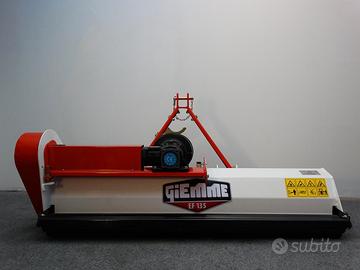 La trinciatrice GIEMME modello EF 125 è una macchina ad asse orizzontale adatta principalmente al taglio dell'erba, degli steli fibrosi e dei piccoli sarmenti. Grazie alle sue piccole dimensioni e al suo peso contenuto questa macchina risulta essere molto leggera e maneggevole, ideale per la manutenzione di frutteti, vigneti, uliveti e di tutte le aree verdi. Ideale per trattori ti : ISEKI - KUBOTA - YANMAR - PASQUALI - VALPADANA - ANTONIO CARRARO - BCS - NEW HOLLAND - JOHN DEER - LANDINI - SOLIS ecc. SCHEDA TECNICA Potenza richiesta: 12 - 18 cv Larghezza lavoro: 125 cm Larghezza macchina: 140 cm Peso: 140 kg Numero mazze: 18 Numero coltelli: 36 Numero cinghie: 3 Gruppo scatola: In ghisa con ruota libera 540 rpm a rotazione oraria Attacco a tre punti: Cat. I Slitte laterali: Regolabili in altezza Rullo posteriore: Regolabile in altezza Prezzo: 1350? iva, trasporto e cardano incluso