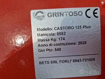 Trincia adatto per lavori di piccola agricoltura e manutenzione del verde Adattabile a trattorini con potenza da 20 a 35 Hp Misure 135X69X73 Larghezza utile di lavoro è di 125 cm