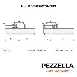 Il gruppo scatola Comer è in ghisa con ruota libera. Il telaio dei modelli TRS è in acciaio avente spessore 8 mm, mentre le fiancate misurano 10 mm ove quella destra è arrotondata e priva di sporgenze, ed è dotato di doppia cassa interna. La bocca d’ingresso è alta 23 cm, così come l’alta camera di trinciatura permettono di gestire un gran flusso di prodotto, senza tuttavia compromettere la qualità di triturazione. Le trinciatrici per trattore TRS sono munite di spostamento idraulico dell’attacco a tre punti di cat II. Il rotore avente un diametro di 16 cm con spessore 8 mm viene montato su cuscinetti a sfera SKF con ingrassatore esterno. cardano incluso
