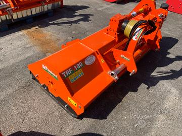 Trincia TRF a coltelli o mazze, per erba e potature fino a 5 cm di diametro, ideale per piccole aziende o privati. Equipaggiamento di serie Attacco a 3 punti CAT.1 con spostamento IDRAULICO Griglia di frantumazione Scarico sul rullo Cardano Dotazioni di sicurezza Palette anteriori in acciaio Slitte laterali regolabili Protezione posteriore in gomma Ruota libera PESO CIRCA 370KG