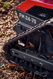 IL NUOVO TRINCIASARMENTI RADIOCOMANDATO È PENSATO PER ESEGUIRE INTERVENTI DI SFALCIATURA IMPORTANTI, DI RIMOZIONE DI ERBA ALTA E CONSISTENTE E DI PULIZIA NEL SOTTOBOSCO ANCHE IN SITUAZIONI DI FORTE PENDENZA. DOTATO DI DI UN SISTEMA IBRIDO: IL MOTORE LONCIN 452 CC PER GARANTIRE LA MASSIMA POTENZA DURANTE LO SFALCIO E DUE MOTORI A BATTERIA DA 24V 1200W PER AVANZAMENTO CINGOLI 2 LAME FLOTTANTI LARGHEZZA DI TAGLIO 70 CM REGOLAZIONE DELL’ALTEZZA DI TAGLIO DA REMOTO DISTANZA DI COMUNICAZIONE CONTROLLO REMOTO 200 MT