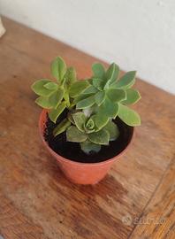 Tris di talee di piante grasse in vasetto di circa 4 cm di diametro.