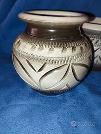 Set di tre vasi in ceramica e gres con decorazioni intagliate.