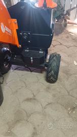 Trituratore DAEWOO ancora in garanzia, mai usato. Vendo per errato acquisto. (Ritiro a carico dell'acquirente presso Palo del Colle). Potenza: 15 HP Cilindrata: 420 cc Avviamento: a strappo / elettrico Batteria: 12V – 18 Ah Diametro massimo cippatura: 12,7 cm (5″) Diametro tamburo: 600 mm Tipo di taglio: sistema a tamburo con doppia lama Lunghezza lama: 200 mm Apertura gola di alimentazione: 170 × 170 mm Dimensioni tramoggia di alimentazione: 580 × 510 mm Altezza tubo di scarico: 1400–1800 mm Lame di taglio: acciaio temprato, doppio filo, reversibili Ruote: 16 × 800 – 7 Timone: con gancio traino per attacco a sfera da 50 mm Peso: 210 kg Motore benzina da 15 HP per alte performance. Lame in acciaio reversibili per un taglio netto. Avviamento elettrico e gancio traino per facilitare l’uso. Ruote grandi per un trasporto agevole su terreni difficili.