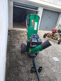 PRATICAMENTE NUOVO. PROVATO UNA SOLA VOLTA. QUALSIASI PROVA. CORREDATO DA TUTTI GLI ACCESSORI ORIGINALI. SOLO RITIRO IN SEDE. VENDO PER CESSATAT ATTIVITA'. Il trituratore TecnoK BTL14.0/120M-E, è uno strumento progettato per un utilizzo intensivo nel trattamento di materiali vegetali di varie dimensioni e può facilmente triturare rami di medie dimensioni e arbusti. Capace di macinare legni con diametro massimo di 120 mm, è equipaggiato con un motore Loncin da 14 HP (420 cc) con avviamento elettrico. Dispone di un sistema a rullo pieno rinforzato e di una doppia lama da 300 mm e controlama, che assicurano elevate prestazioni e durata. La trasmissione a cinghia protegge la macchina da eventuali sovraccarichi. Per garantire la sicurezza, è presente un pulsante di emergenza all’ingresso della tramoggia, che permette uno stop immediato in caso di necessità. Il trituratore è dotato di due ruote pneumatiche da 16”, gancio traino sollevabile e maniglia arrotondata, che facilita lo spostamento.